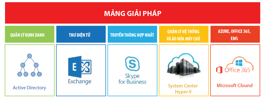 + Giải pháp điện toán đám mây với dịch vụ Microsoft Office 365, EMS, OMS và Azure.