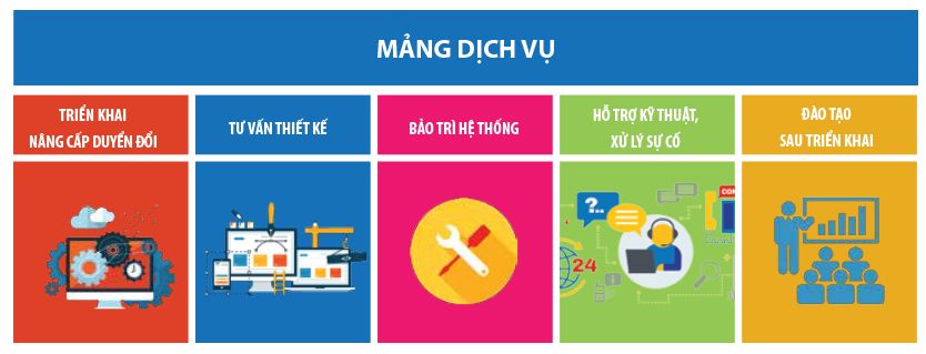 + Dịch vụ tư vấn, thiết kế, triển khai và nâng cấp các giải pháp