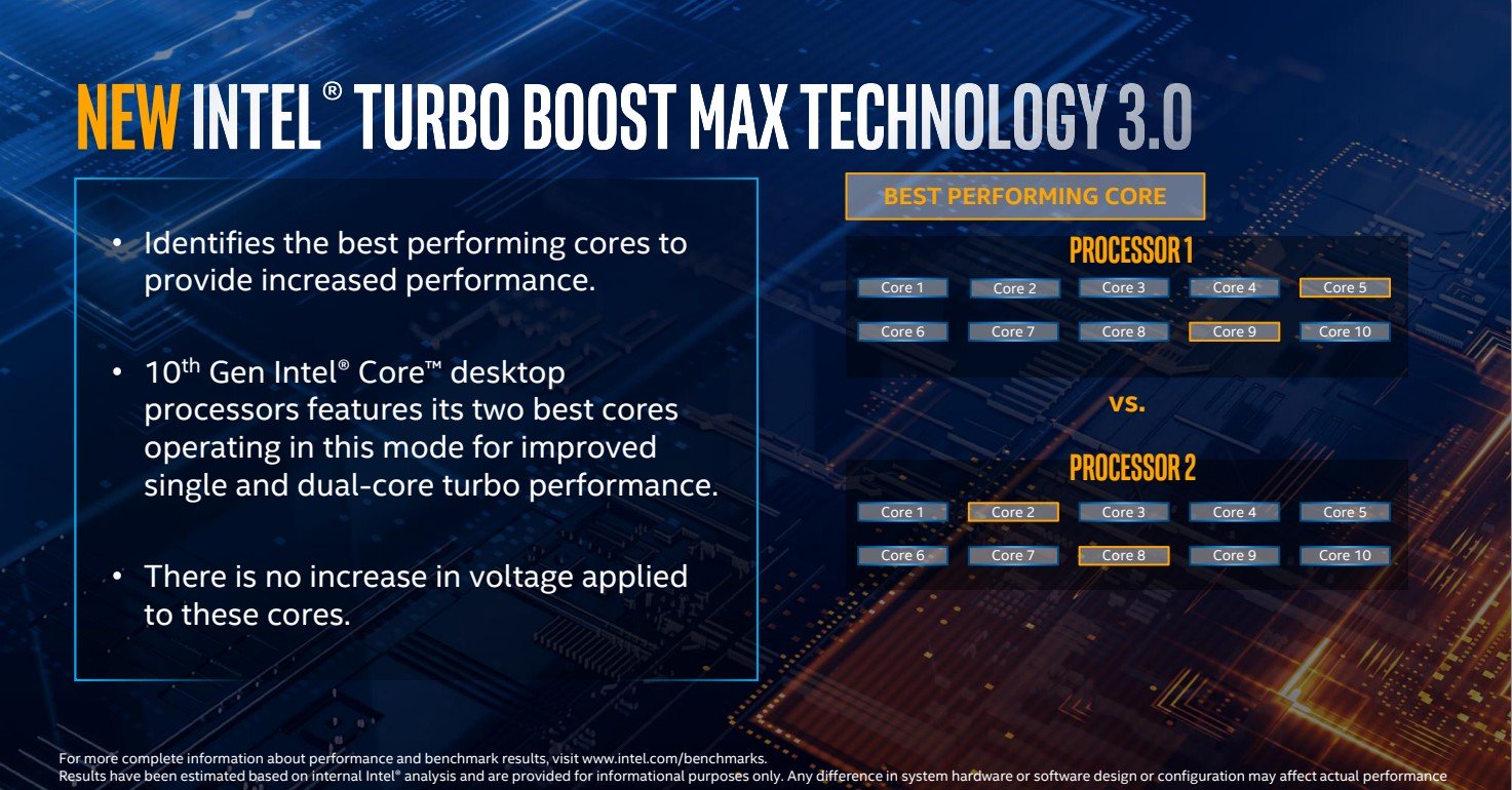 Ở phân khúc cao cấp vẫn là Core i9, flagship Core i9-10900K nay đã có 10 nhân 20 luồng với mức giá dưới 500 USD. Cùng với biến thể Core i9-10900KF với GPU tích hợp được tắt đi thì đây là 2 phiên bản duy nhất trong đợt này đạt mức xung 5,3 GHz đơn nhân và Intel cam kết có thể đạt 4,9 GHz toàn nhân với điều kiện tản nhiệt tốt - công nghệ Thermal Velocity Boost sẽ tự động kích hoạt để đưa toàn nhân lên mức xung này mà không phải thêm điện áp như khi OC. Anh em lưu ý nhé, riêng với Core i9 thì bên cạnh Turbo Boost 2.0, Turbo Boost Max 3.0 thì chúng ta sẽ có Thermal Velocity Boost, Intel cũng đưa ra con số cụ thể để chúng ta hình dung.