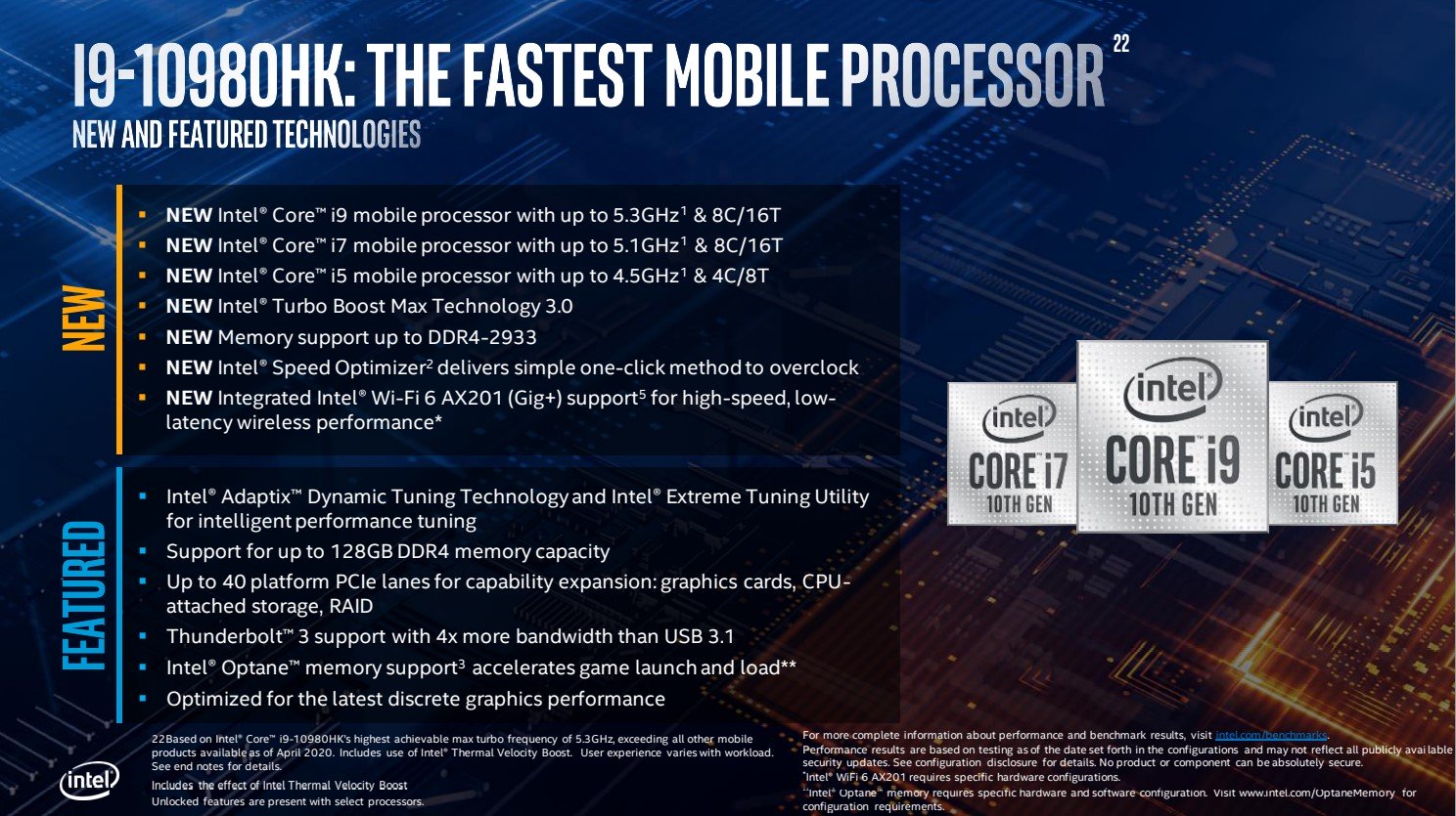Như vậy là Intel cũng đã có lời đáp trả đối với AMD ở phân khúc CPU cho laptop với dòng Comet Lake-H hiệu năng cao. Những con CPU này sẽ hướng đến những chiếc máy chơi game hay xử lý đồ họa và nhiều ứng dụng hiệu năng cao khác, xung nhịp lên đến 5,3 GHz và có nhiều tính năng mới.