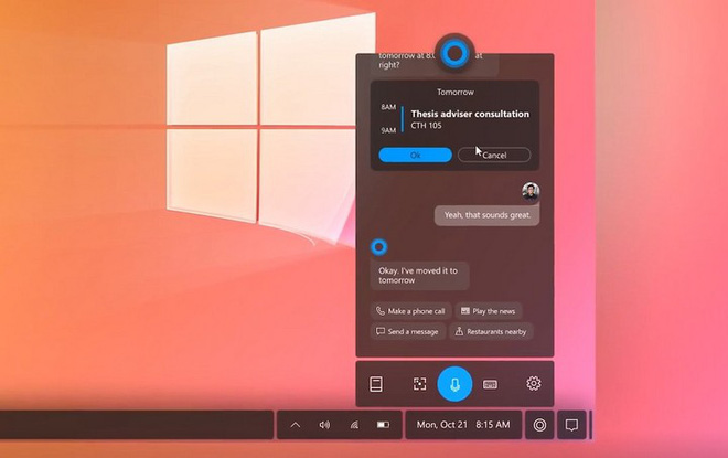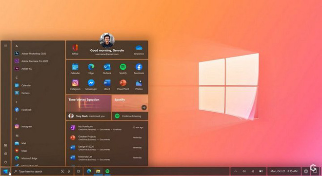 Trợ lý ảo Cortana sẽ có một ngôi nhà mới ở góc dưới bên phải, một sự thay đổi đang được Microsoft cân nhắc và Start Menu được thiết kế lại tổng gọn gàng, ngăn lắp và có sự phân chia rõ ràng hơn.