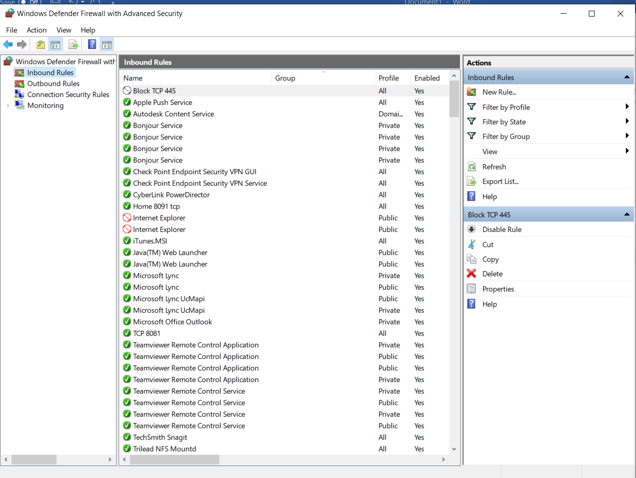 - Block Port TCP 445: