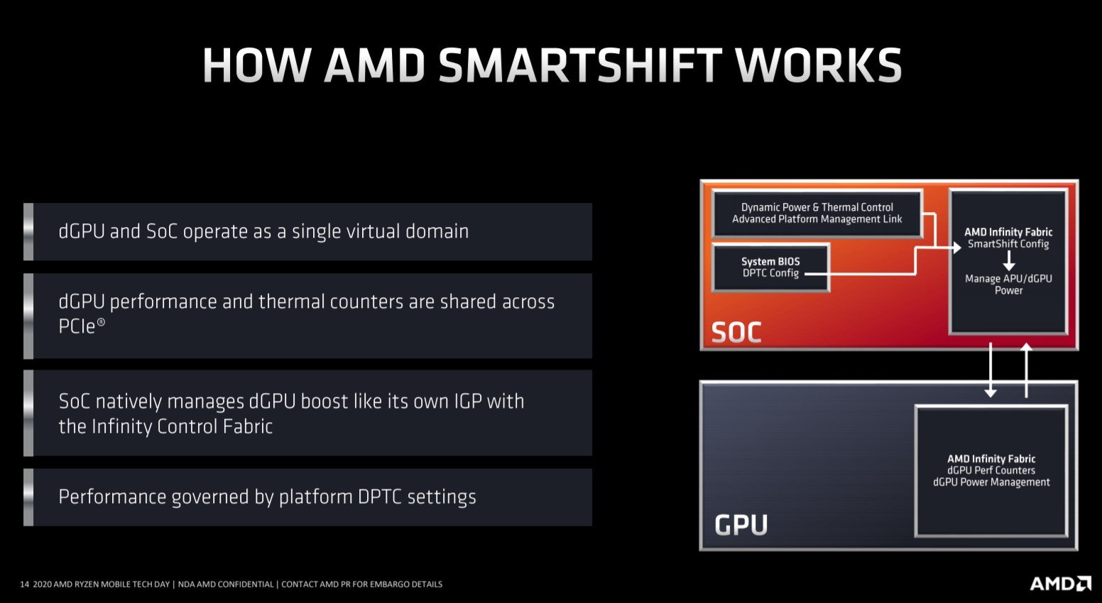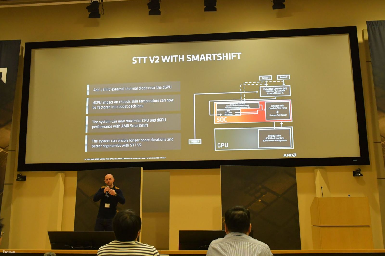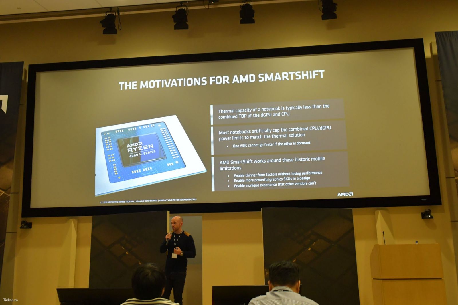 Một tính năng cực kỳ lợi hại khác trên Ryzen Mobile 4000 series là Smart Shift và AMD đã nói đi nói lại nhiều lần về tính năng này tại sự kiện, anh em sẽ dễ hình dung và thích thú hơn so với STT V2.